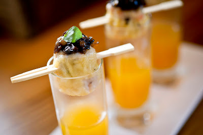 Prove o camarão com wasabi, o rolinho de primavera de champignons ou a salada de galinha escultural.