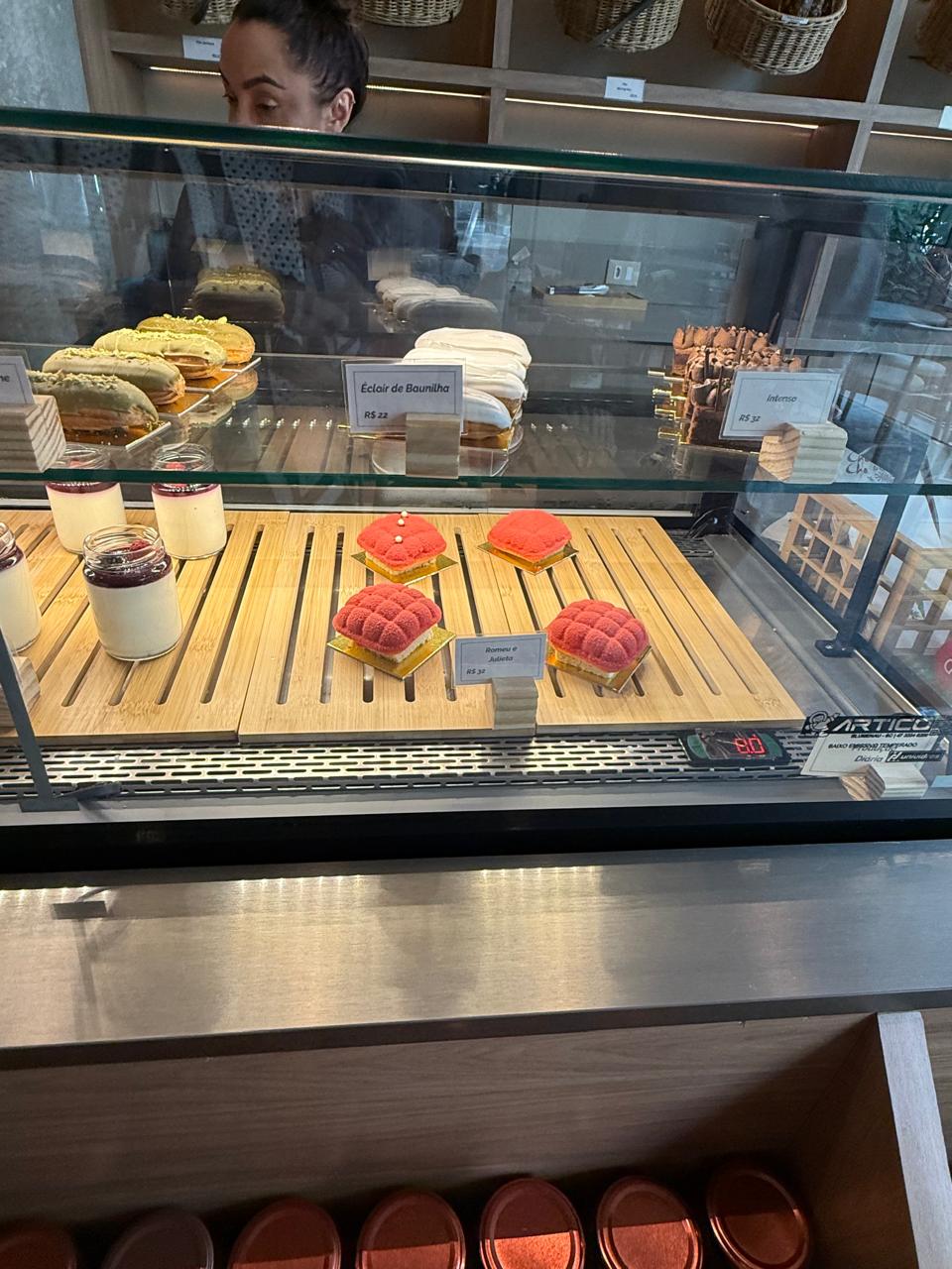 Além do restaurante, tem logo no hall uma Boulangerie com vários produtos, bebidas e congelados do Charlô.