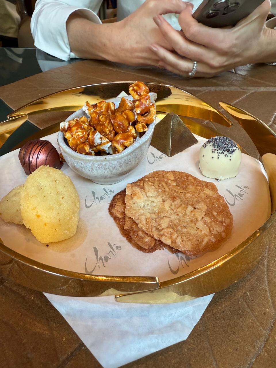 Agora o ponto alto foi a sobremesa, acompanhada de café com pipocas caramelizadas,e vários petit fours.