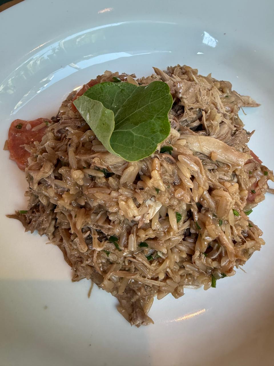 Comemos arroz de pato, prato muito farto ,que para o meu paladar faltou mais temperos.