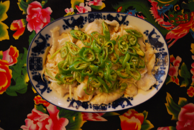 O homem na cozinha, Xiaofeng Liao, é um cozinheiro de formação clássica de Sichuan, e seu menu (língua de pato com pimenta;“sapo salivando“) foi projetado para reintroduzir a cozinha tradicional chinesa para gerações de Nova-iorquinos desmamados com fast food de comida chinesa.