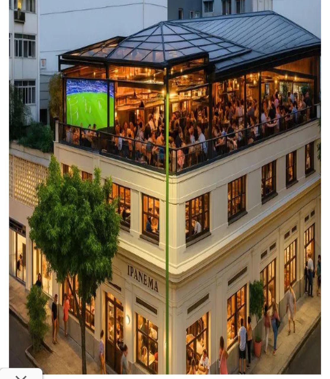 Tem um rooftop com vista pra Praça Nossa Senhora da Paz, teto retrátil de vidro, telão para dias de jogo e um telescópio apontado para o Cristo Redentor.