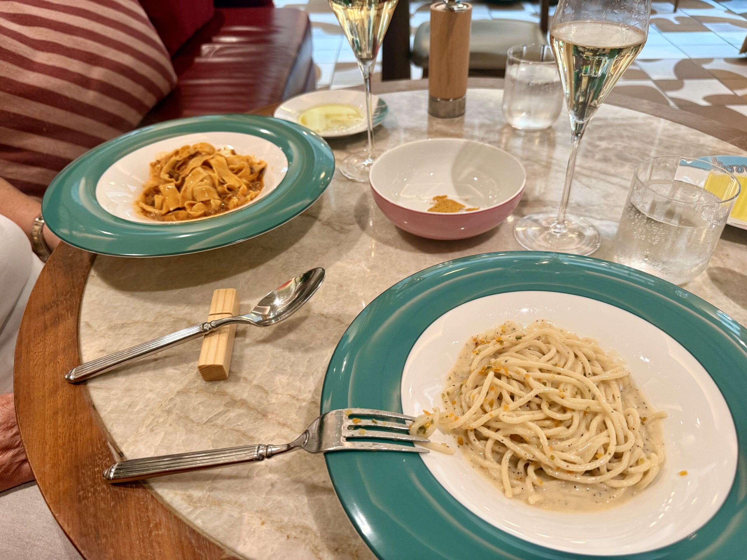 Como prato principal ele foi de tagliatelle de ragu de wagyu e eu fui de caccio e peppe que veio com raspas de laranja. Fantástico!