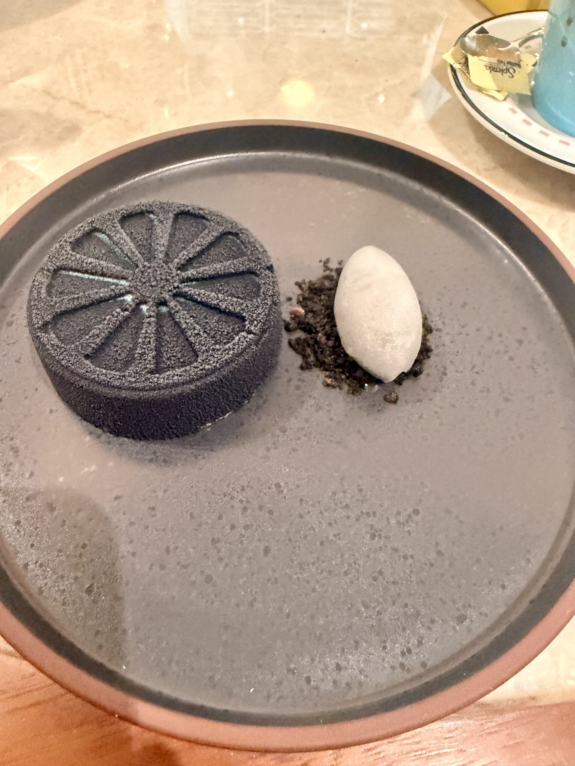 E meu marido experimentou uma composição de chocolate e sorvete de laranja!