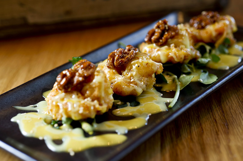Prove o camarão com wasabi, o rolinho de primavera de champignons ou a salada de galinha escultural.